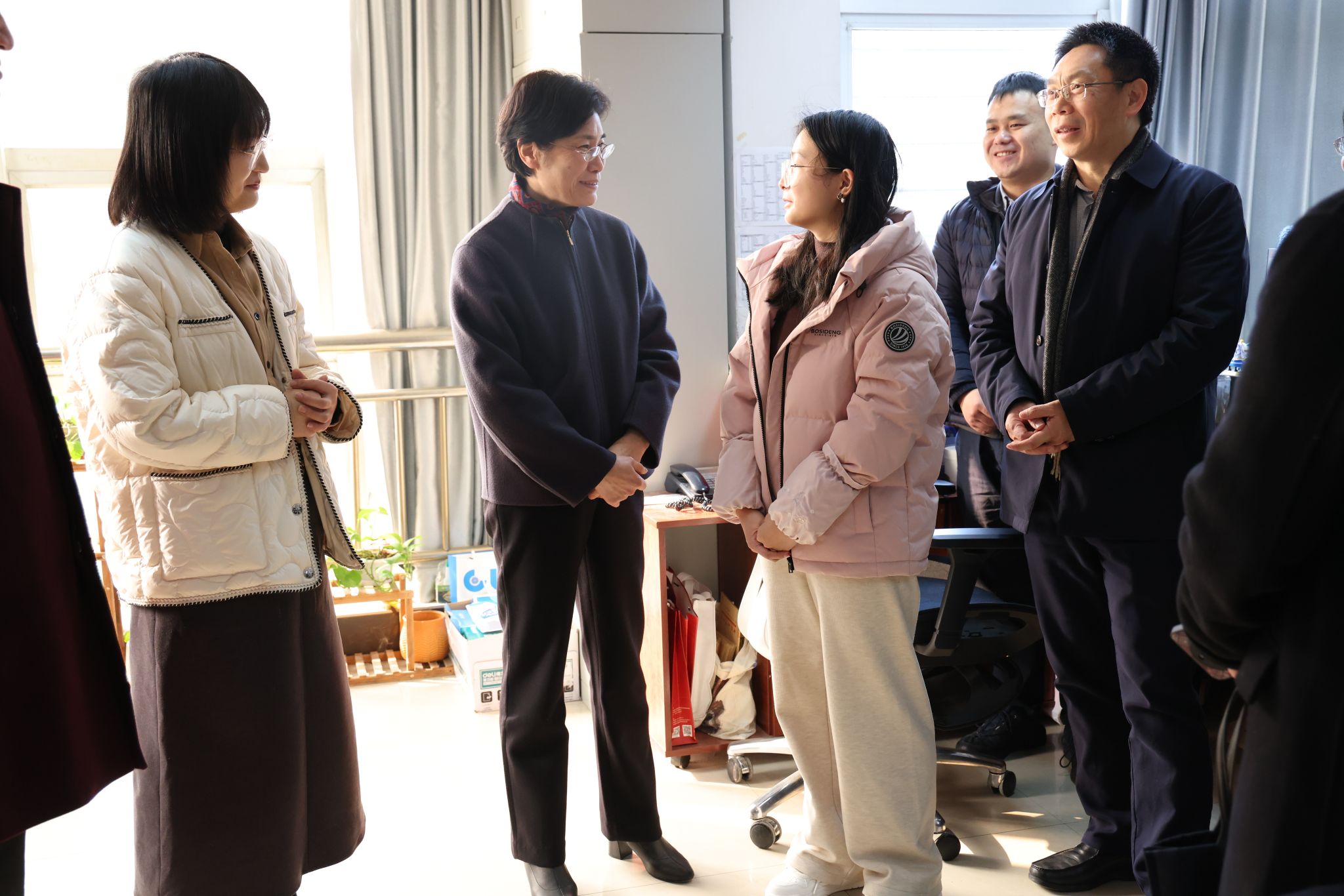 3月7日上午,校党委书记黄晓玫,党委副书记、工会主席王甫,党委常委、党委组织部部长陈文武及相关部门负责人到公共管理学院走访慰问先进女教职工及女干部代表。