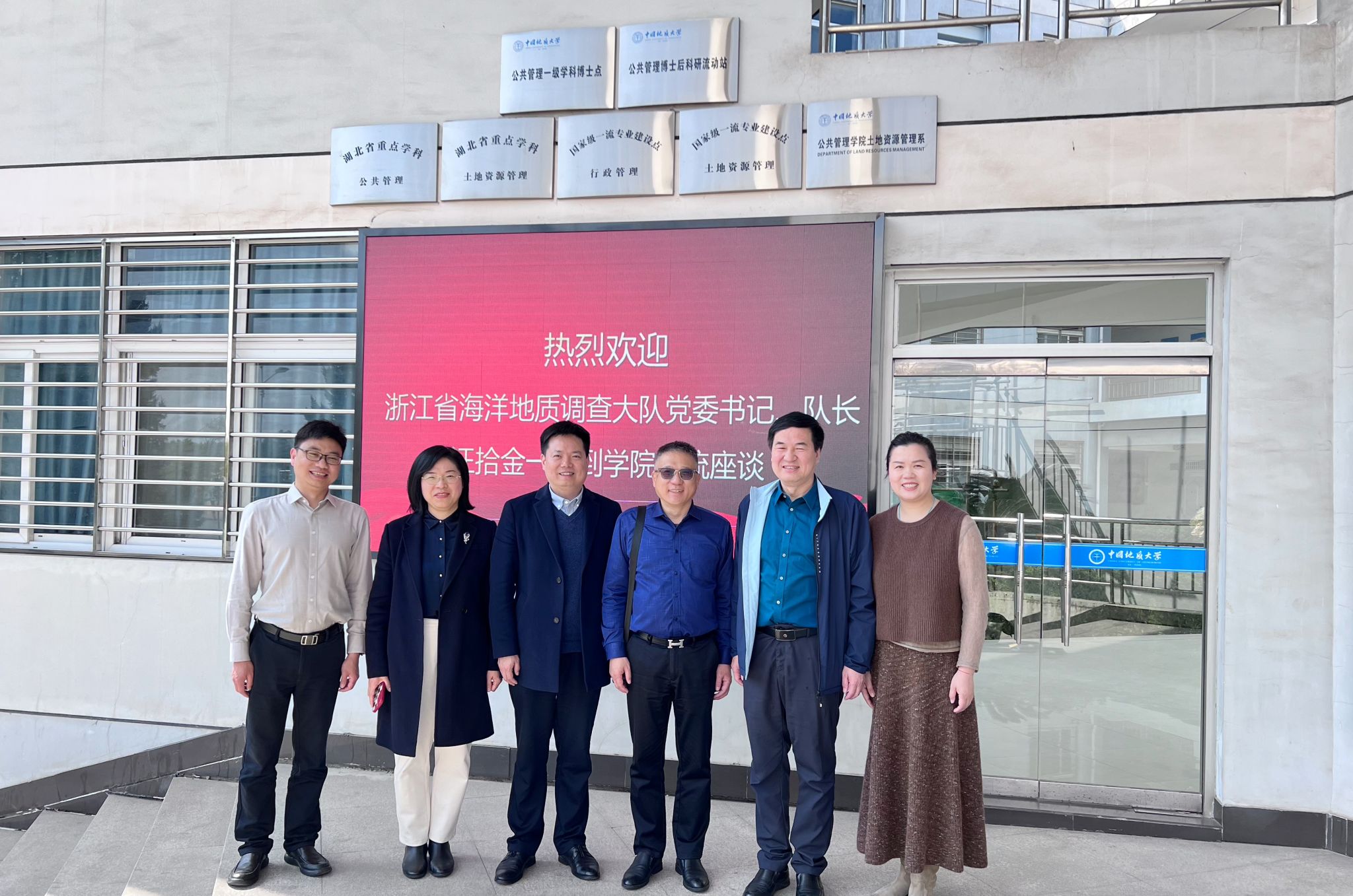 3月22日,浙江省海洋地质调查大队党委书记、队长汪拾金,副队长、纪委书记、工会主席黄慧琴,海洋基础研究中心主任徐征一行来学院座谈交流。学院部分领导班子成员党委书记张宽裕、院长胡守庚、副书记龚丽、副院长吕凌燕,教授代表王占岐教授、土地资源管理系主任方世明、副主任杨建新、综合办彭珂等人参加座谈会。