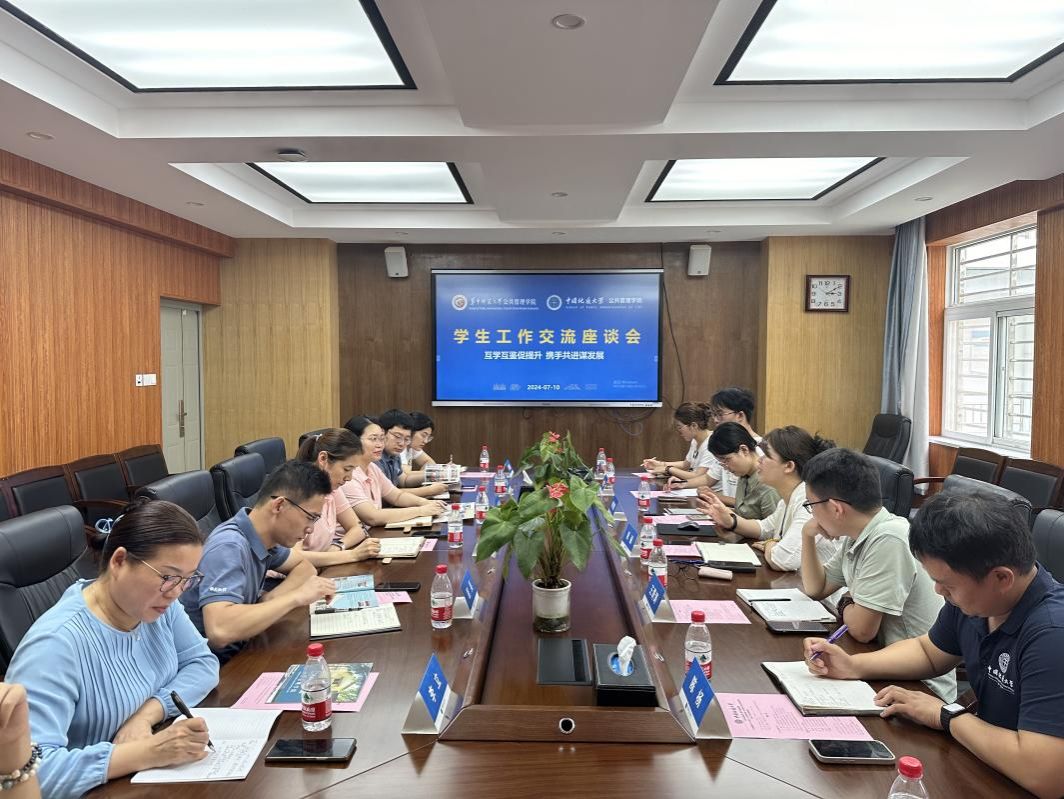 与会人员针对专业人才培养、党建、学生就业、学生组织建设等方面进行了深入的经验交流。
