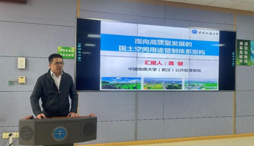 下半场由中国地质大学(武汉)杨建新副教授主持,南京大学秦萧副教授点评。其中,中国地质大学(武汉)龚健教授以《面向高质量发展的国土空间用途管制体系架构》为题进行报告。他认为面向高质量发展,国土空间用途管制应灵活应对国土开发保护的不确定性,以高标准保护、高效能开发、以高韧性支撑、高水平治理为目标,明晰国土空间用途管制的主体、对象、规则、实施监督、实施保障等方面的核心任务,构建全域全要素的、全流程全生命周期的国土空间用途管制体系,协调开发与保护的关系,实现社会、经济效益最大化。