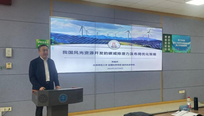 上半场由南京大学秦萧副教授主持,中国地质大学(武汉)龚健教授点评。其中,陕西师范大学党委书记李晓兵教授以《我国风光资源开发的碳减排潜力及布局优化策略》为题进行报告。他认为大力发展可再生能源已成为我国应对气候变化、健全能源安全保障体系和实现“双碳”目标的重要战略;并进一步分析了我国风光资源分布地区差异,提出未来仍需结合资源丰富程度、空间适宜性、经济社会条件等特征综合布局风光资源开发项目;与此同时,风光资源开发的碳减排潜力巨大,但面临本地消纳不足、用地矛盾、负面生态环境影响等挑战,建议从用地科学规划、生态友好选址、生态效益评估、行业协调发展等方面积极采取措施、应对挑战。