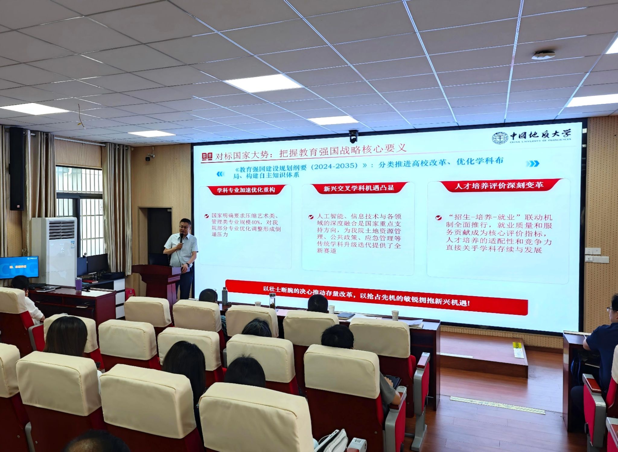 7月8日下午,公共管理学院召开全体教职工大会。学院党委副书记、纪委书记龚丽主持会议。