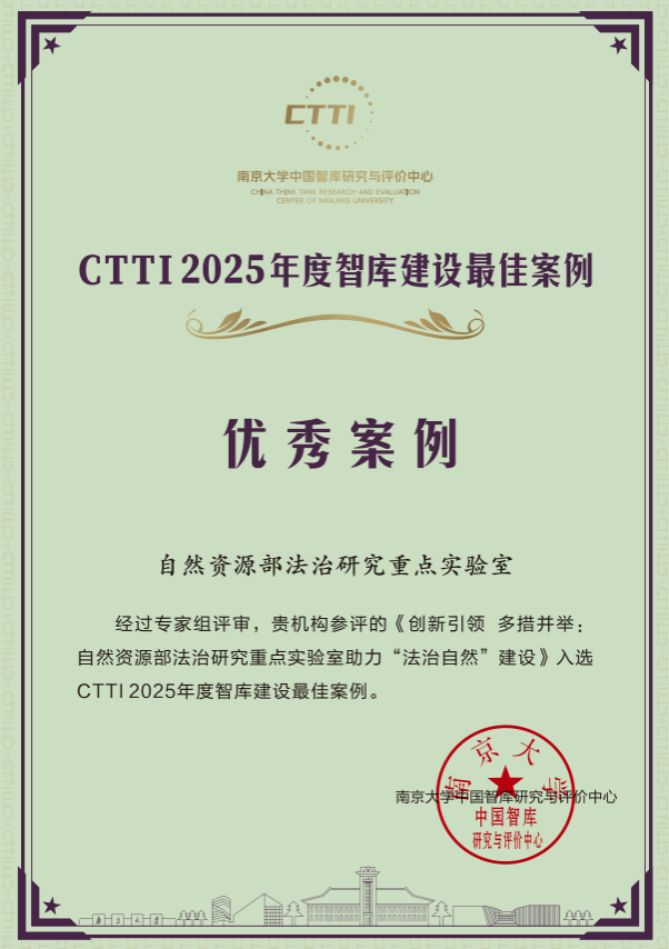 长期以来,我院自然资源部法治研究重点实验室紧扣国家重大战略需求和地方社会发展实际,持续推出高质量、有影响力的研究成果。本次荣获CTTI多项奖项,是对我院智库建设能力与学术研究水平的充分肯定。面向“十五五”,我院将继续提升智库建设水平,强化学科与智库协同创新,持续为国家战略实施与地方高质量发展贡献更多智慧与方案。