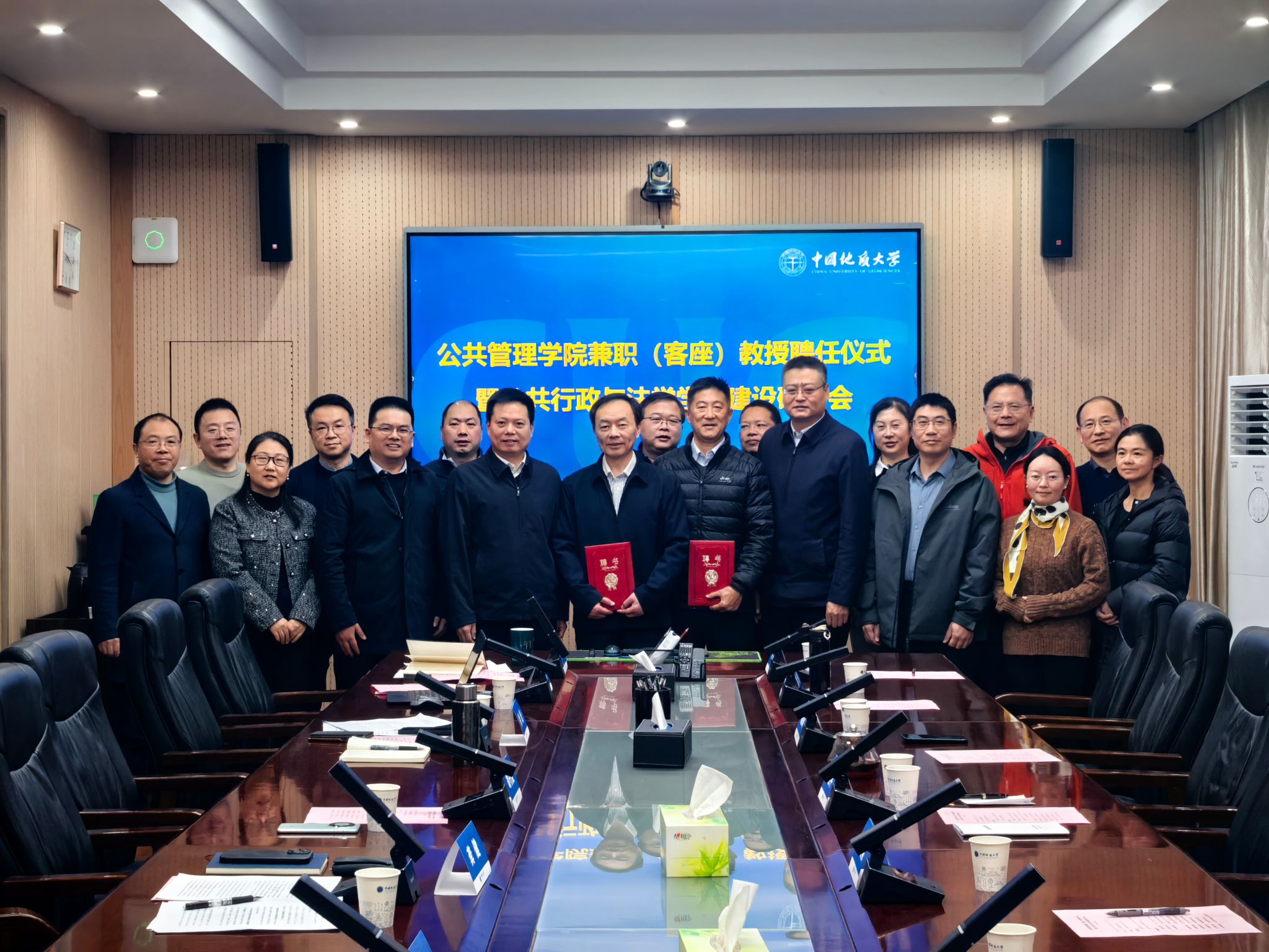 冬至阳回,岁末添彩。2025年12月24日,公共管理学院隆重举行邓国平、魏铁军兼职(客座)教授聘任仪式。学院党委书记徐岩主持仪式,中国地质大学(武汉)副校长胡守庚、公共管理学院院长龚健及学院领导班子成员、各系部负责人、骨干教师代表出席仪式,共同见证这一重要时刻。