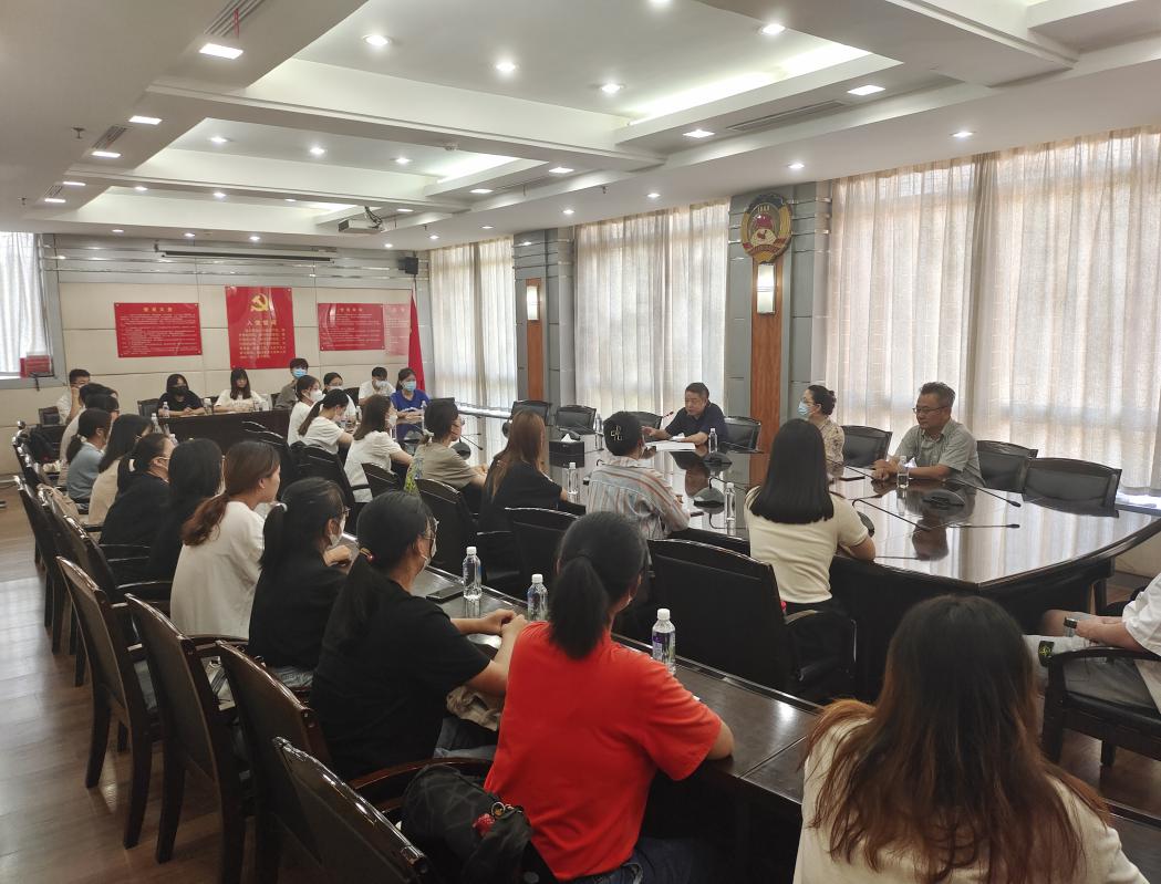 8月8日上午,公共管理学院2020级公共行政系第二批赴洪山区政府教学实习启动仪式在洪山区政府举行。洪山区委直属机关工委鄢裕高书记,我校公共管理学院工会主席曾伟教授、谢小青副教授以及40名洪山区政府实习生参会。