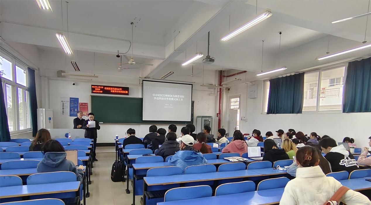 (通讯稿 徐煜)2023年11月23日,应国际教育学院和公共管理学院联合邀请,国际科学理事会(ISC)和联合国减灾办(UNDRR)联合发起的灾害风险研究(IRDR)国际计划办公室执行主任、中国可持续发展大数据国际研究中心特聘研究员韩群力来校讲座,并组织我校第二期“全球胜任力”人才培养工作坊。本次讲座主题为“以UNESCO和IRDR为例看国际多边科技合作的模式和工具”,学校教师代表以及部分博士生、硕士生、本科生在北区综合教学楼209聆听报告讲座。讲座由公共管理学院副院长李世祥教授主持。
