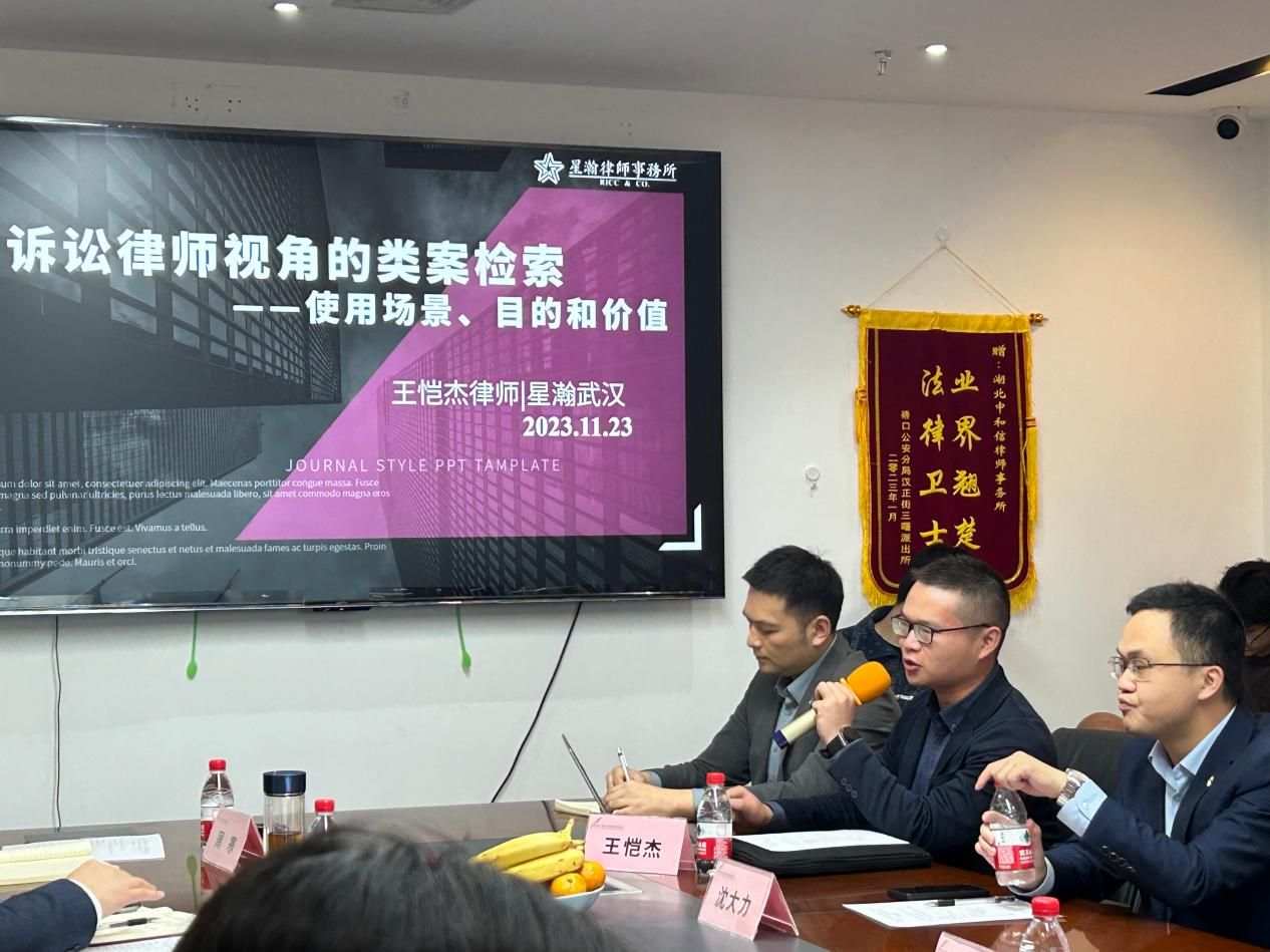 星瀚律所沈大力主任结合律所的发展历程,分享了律所文化创新、发展模式创新、业务创新助力青年法律人才成长的管理经验,并介绍了律所在海事海商、跨境涉外知识产权、国企合规、双碳法治、心理咨询、高校教育板块、企业内控与反舞弊等领域的业务创新,以及律所在寻找蓝海方面的努力。王恺杰律师和万然律师分别从不同领域出发,与同学们展开精彩的分享与对谈。王恺杰律师分享了从律师视角出发的类案检索,包括使用场景、目的与价值,并对类案检索的操作流程与注意事项进行详细的讲解。万然律师从法科生职业规划展开,围绕职业认知、职业学习、职业选择三个纬度,并结合自身工作经验,跟与会人员分享了自己心得体会,特别强调实践与理论的同等重要性,为学生们提供了宝贵指引。