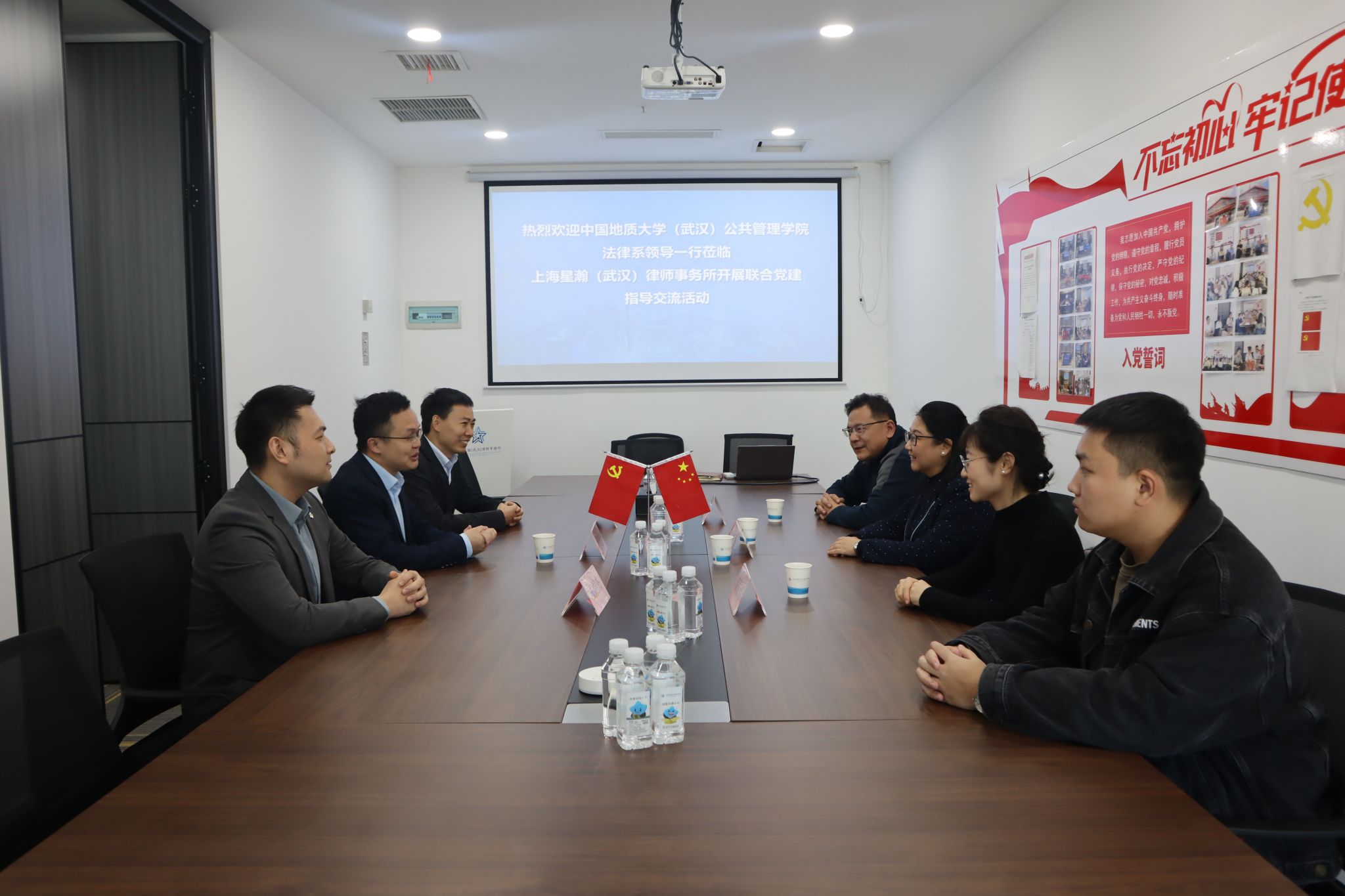 为搭建法学教育与实践的桥梁,2023年11月23日,中国地质大学(武汉)公共管理学院法学系彭涛、吕凌燕与韩成芳老师携35位法学系学生赴上海星瀚(武汉)律师事务所与湖北中和信律师事务所开展共建座谈会。上海星瀚(武汉)律师事务所主任沈大力,合伙人律师万然、王恺杰,律师助理孙潇威,实习生许湘怡、薛尊阳,湖北中和信律师事务所党支部书记、主任李文,副主任张强,刑事业务部副部长张倩倩,专职律师周寒、熊薇等参加交流座谈。