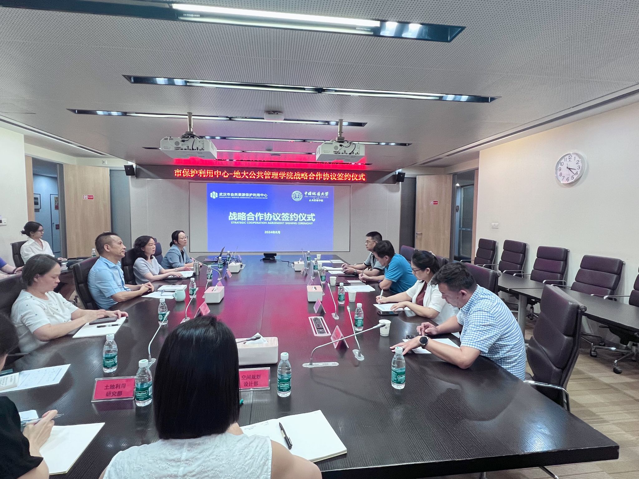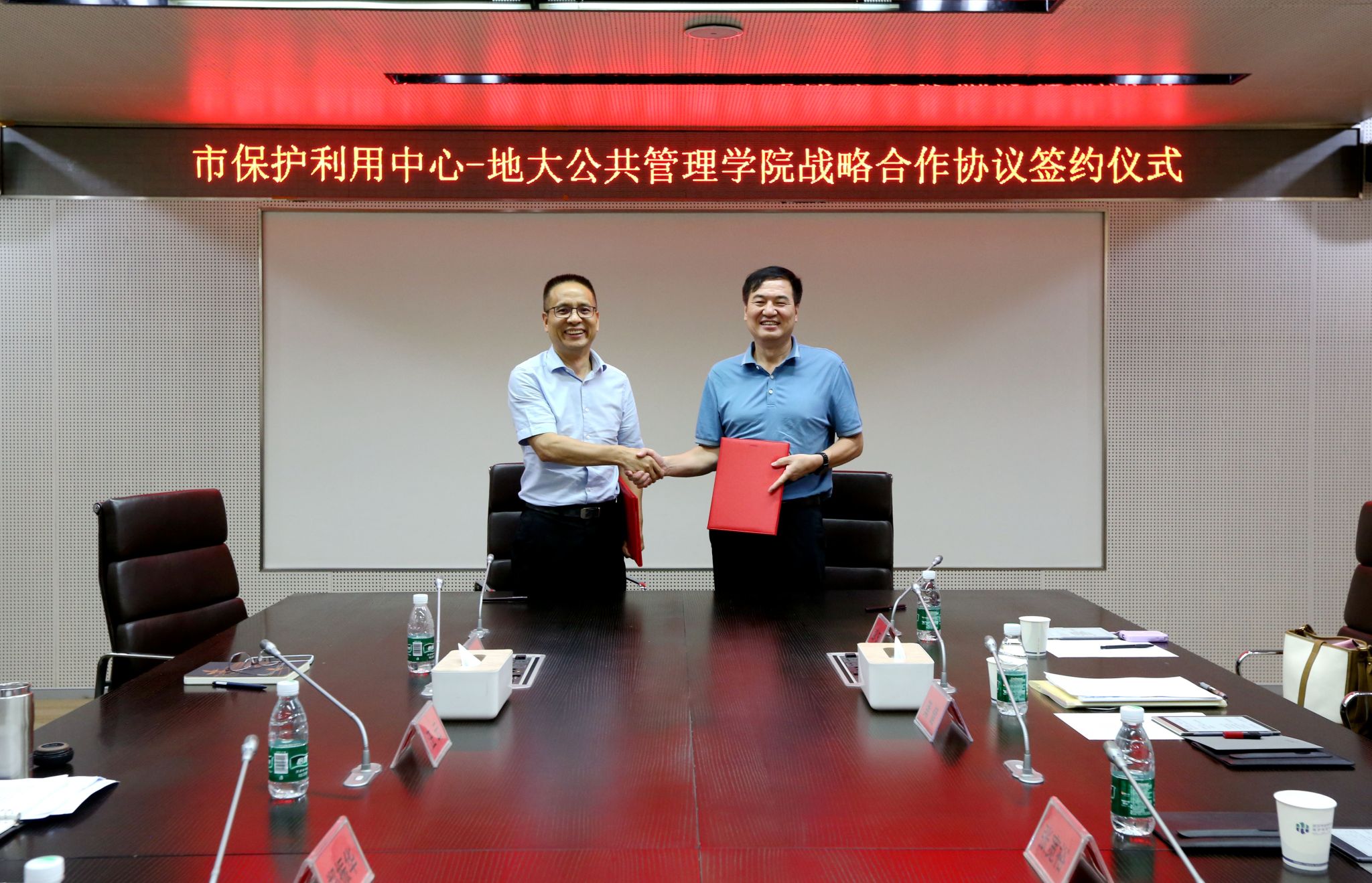 8月1日,学院与武汉市自然资源保护利用中心(简称“市保护利用中心”)签署战略合作协议。市保护利用中心党总支书记、主任郑振华、副主任汪云,学院党委书记张宽裕、副院长龚健、吕凌燕,双方相关负责人参加签约仪式。