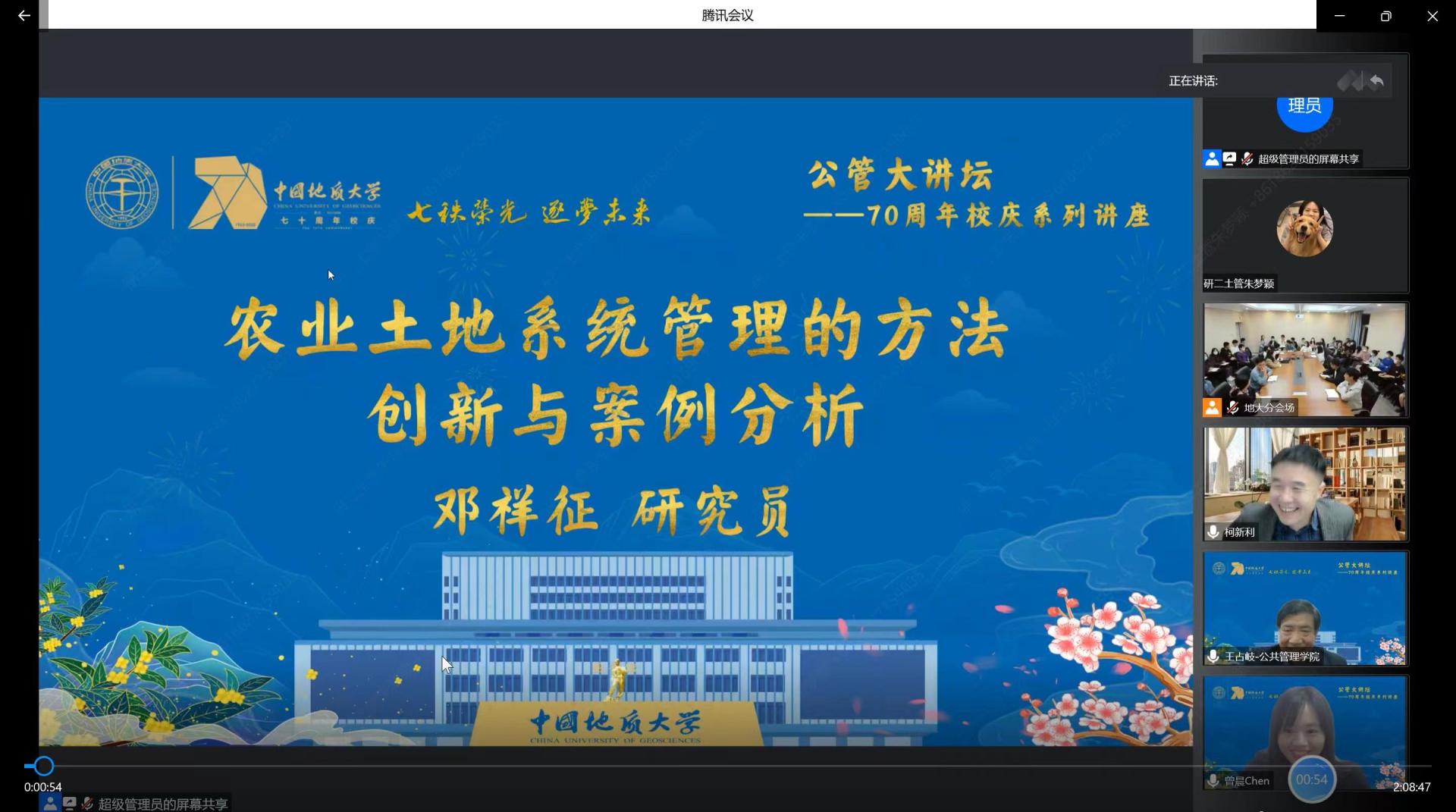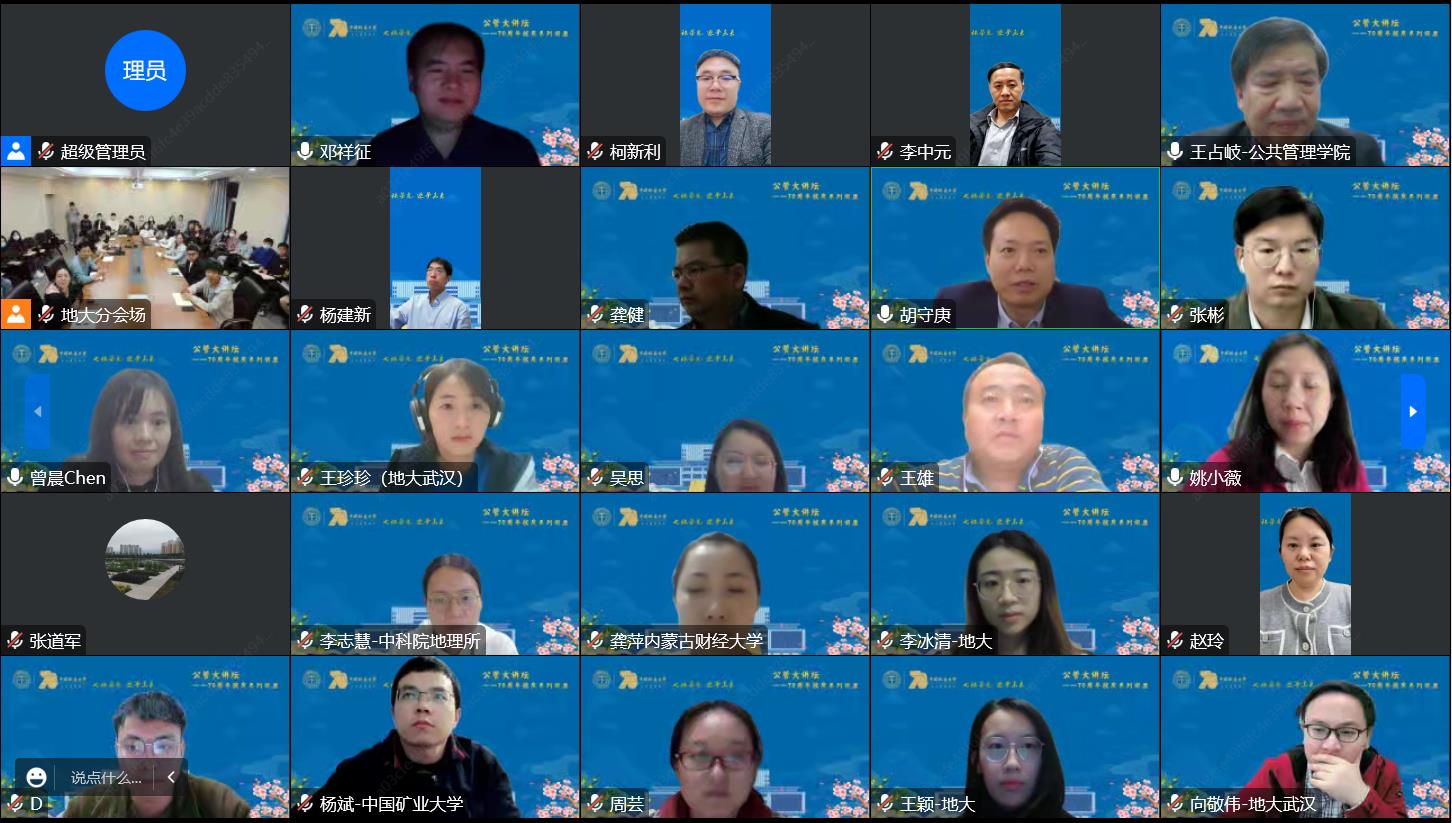 (通讯员 王颖)11月2日,为迎接我校70周年华诞,中国科学院地理科学与资源研究所邓祥征研究员应邀为我校师生作题为“农业土地系统管理的方法创新与案例分析”的线上学术报告。本次报告由王占岐教授主持,采取线上方式进行,我校部分教师、硕博研究生以及全国其他高校师生近500人参加了本次学术报告。