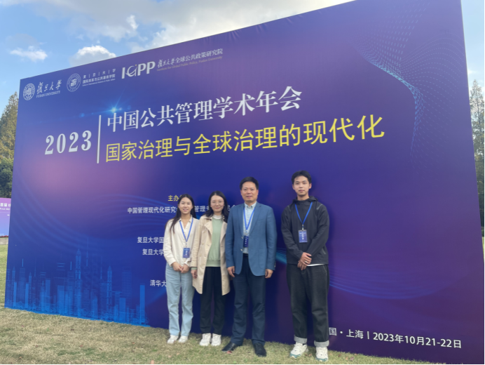 (通讯员 王玉)10月21-22日,2023年度中国公共管理学术年会在复旦大学顺利召开,本届年会主题为“国家治理与全球治理的现代化”,由中国管理现代化研究会公共管理专业委员会主办,复旦大学国际关系与公共事务学院、复旦大学全球公共政策研究院联合承办,清华大学公共管理学院支持。我院院长胡守庚教授、博士后甘颖及两名博士生参加本次会议。